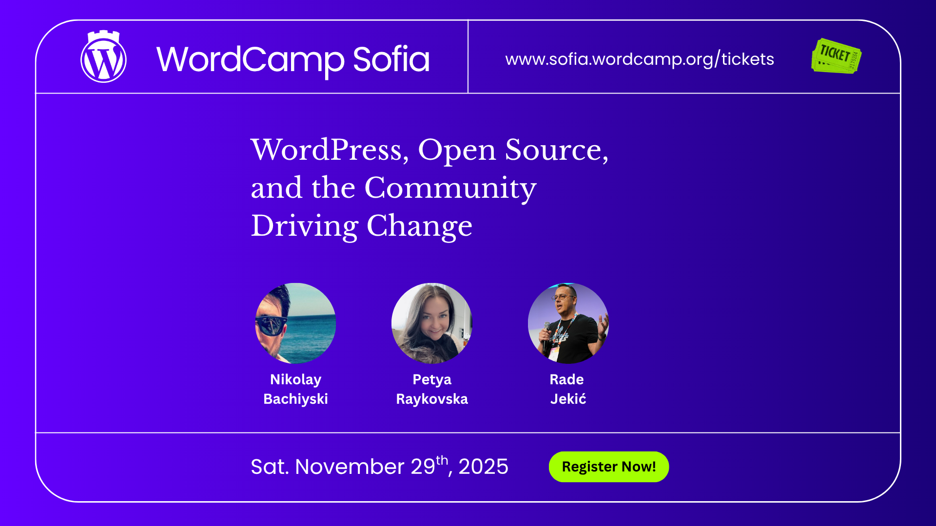 WordPress, Open Source, and the Community Driving Change, защото WordPress винаги е бил не просто технология, а общност, която споделя знания, подкрепя иновации и заедно изгражда бъдещето на уеба.