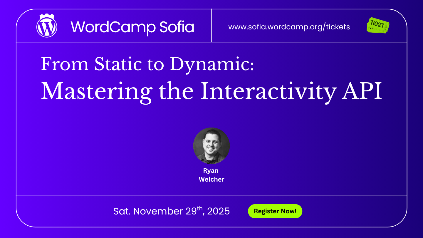 🇬🇧 Today we highlight another powerful session in the Tech track at WordCamp Sofia 2025 – a deep dive into the new Interactivity API and the future of dynamic WordPress experiences.